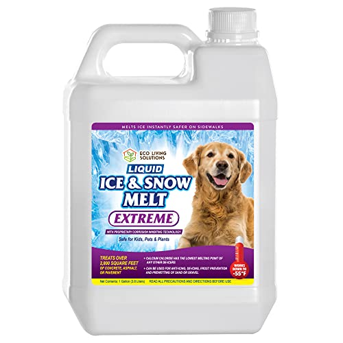 LIQUID ICE & SNOW MELT EXTREME | ECO LIVING SOLUTIONS - LIQUID ICE MELT & LIQUID DEICER | PET SAFE ICE MELT | ICE MELT SAFE FOR CONCRETE | LIQUID CALCIUM CHLORIDE ICE & SNOW MELT (1 GALLON)