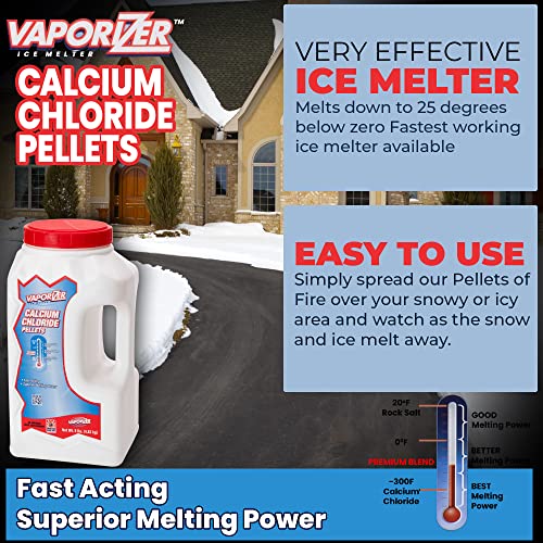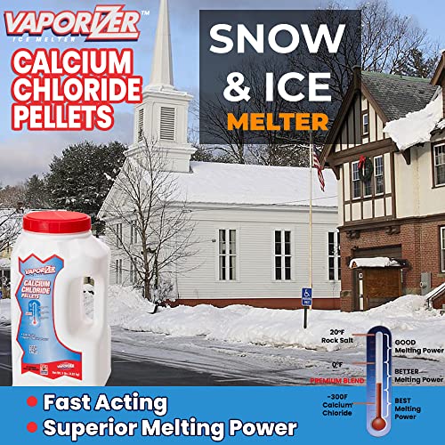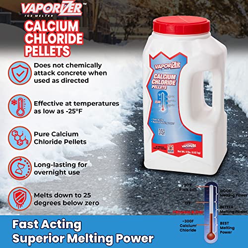 VAPORIZER 90% PURE CALCIUM CHLORIDE SNOW & ICE MELT PELLETS | EFFECTIVE AT -25° | 9 LB JUG | CONCRETE SAFE ICE MELT | EASY SPREADER